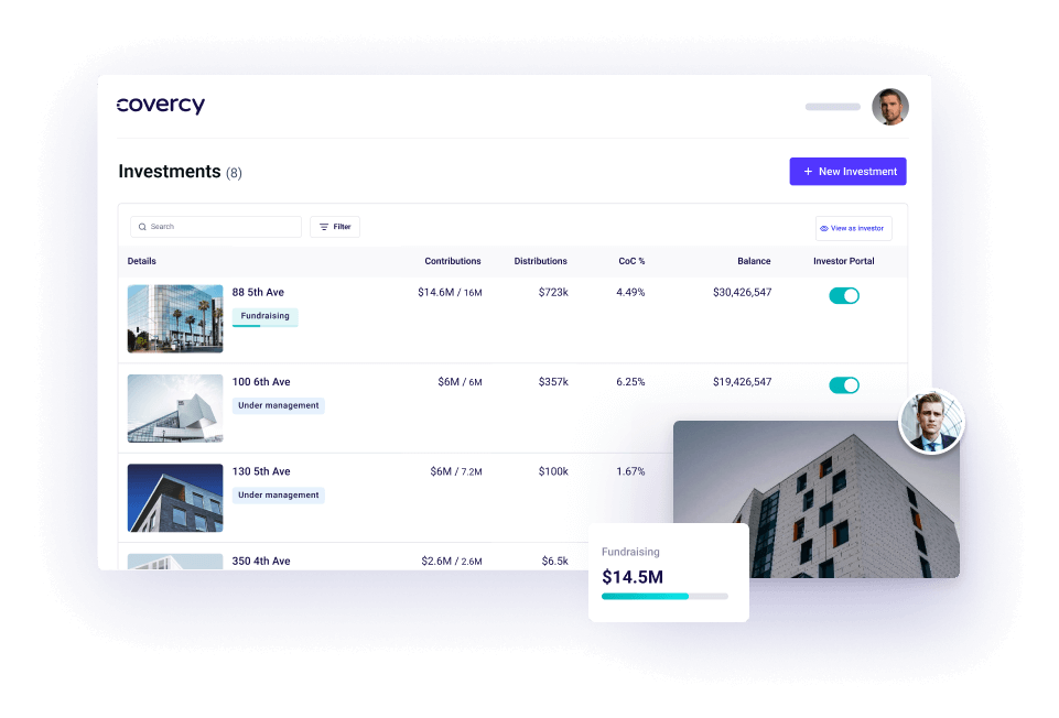 Covercy goes beyond traditional investment management functionality by introducing a smart and intuitive feature set designed to accelerate growth for real estate firms.